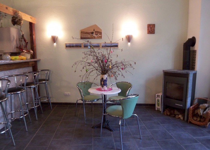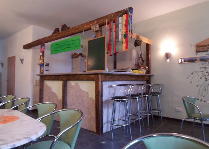 Im Erdgeschoss befindet sich ein großzügig geschnittener Raum für bis zu 22 Personen mit voll eingerichteter Einbauküche inkl. Geschirrspüler, Kühlschrank, 2 Herdplatten und Geschirrausstattung. Sollten Sie nicht selbst kochen wollen, stellen wir Ihnen gern den Kontakt zu bereits erprobten Catering-Firmen aus der näheren Umgebung her.